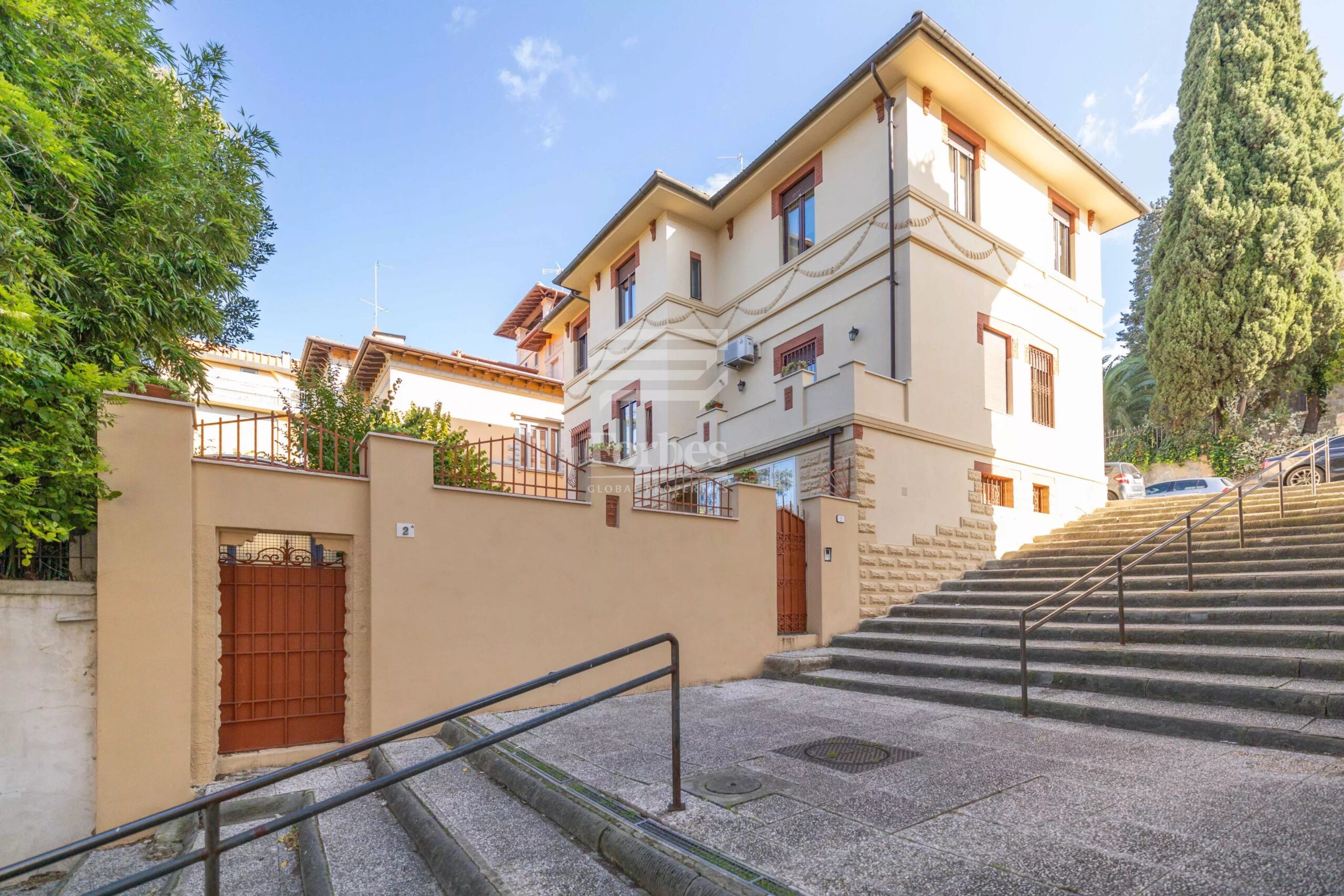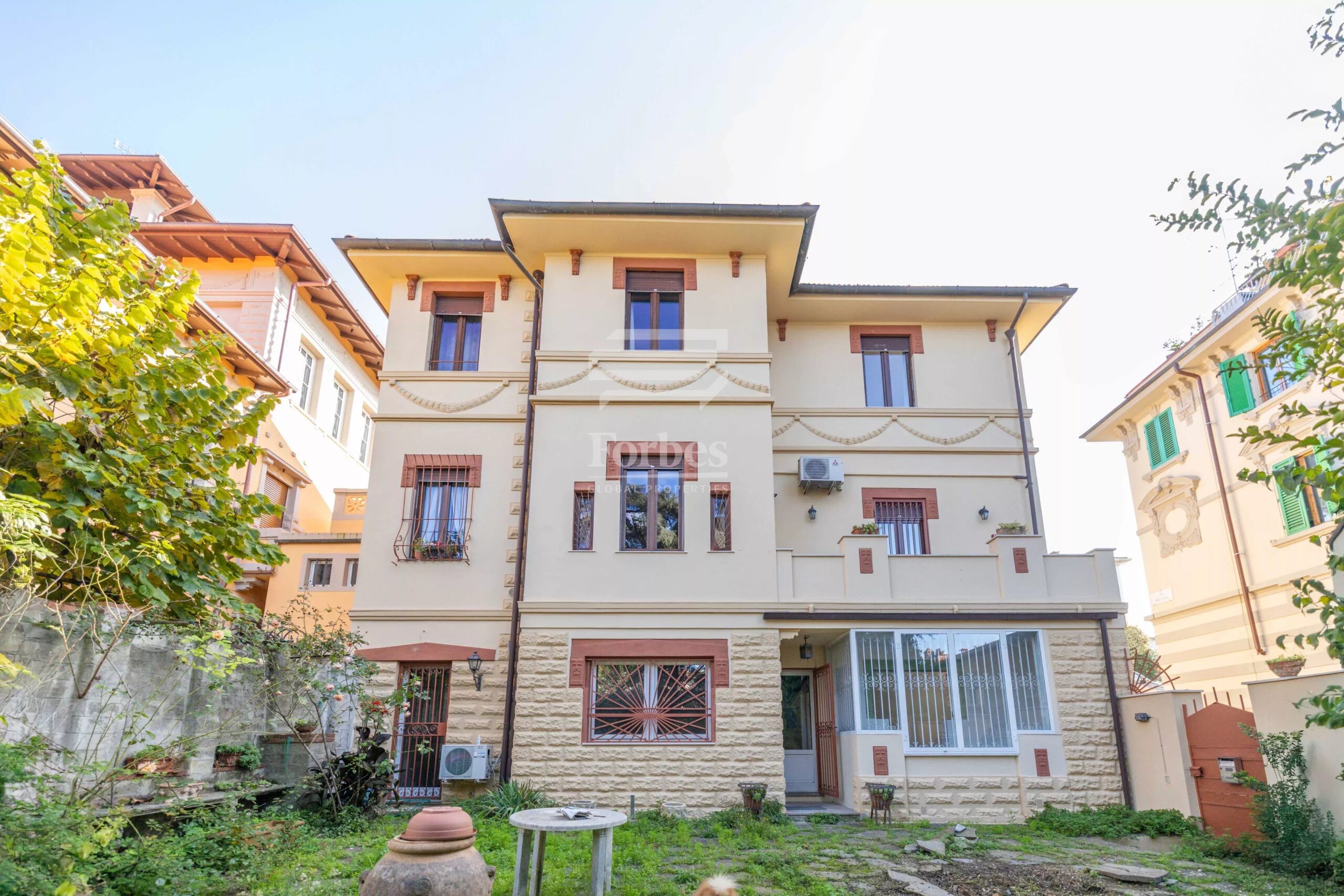 Elegante Villa im Jugendstil in einer ruhigen und gut erschlossenen Gegend, ideal fรผr diejenigen, die in einem eleganten Wohnumfeld leben mรถchten. Das Anwesen ist auf drei Ebenen und wird durch einen exklusiven Garten und eine praktische Garage verschรถnert.