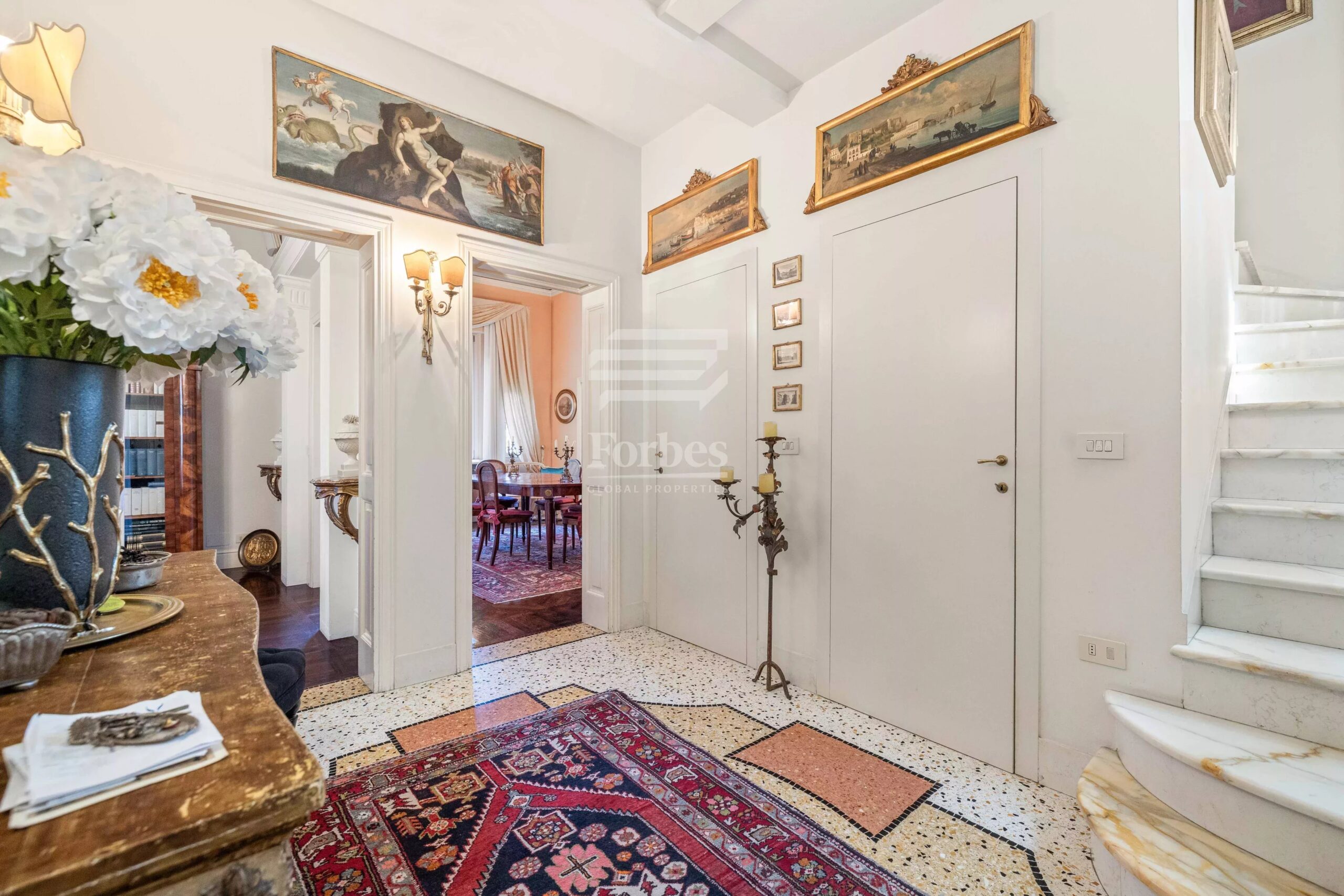 The interiors, currently divided into two units, are in excellent state of maintenance and still retain the original decorations in neo-Egyptian Art Nouveau style, which give the house an authentic charm and great architectural value.
