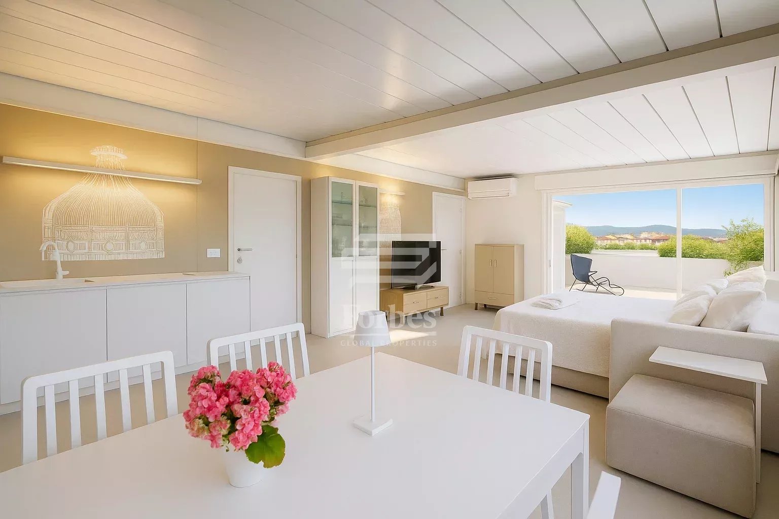 L’immobile, recentemente ristrutturato con materiali di altissimo pregio, presenta un ampio living con cucina open-space, due camere da letto (di cui una con bagno en-suite), secondo bagno, disimpegno attrezzato e lavanderia/ripostiglio.