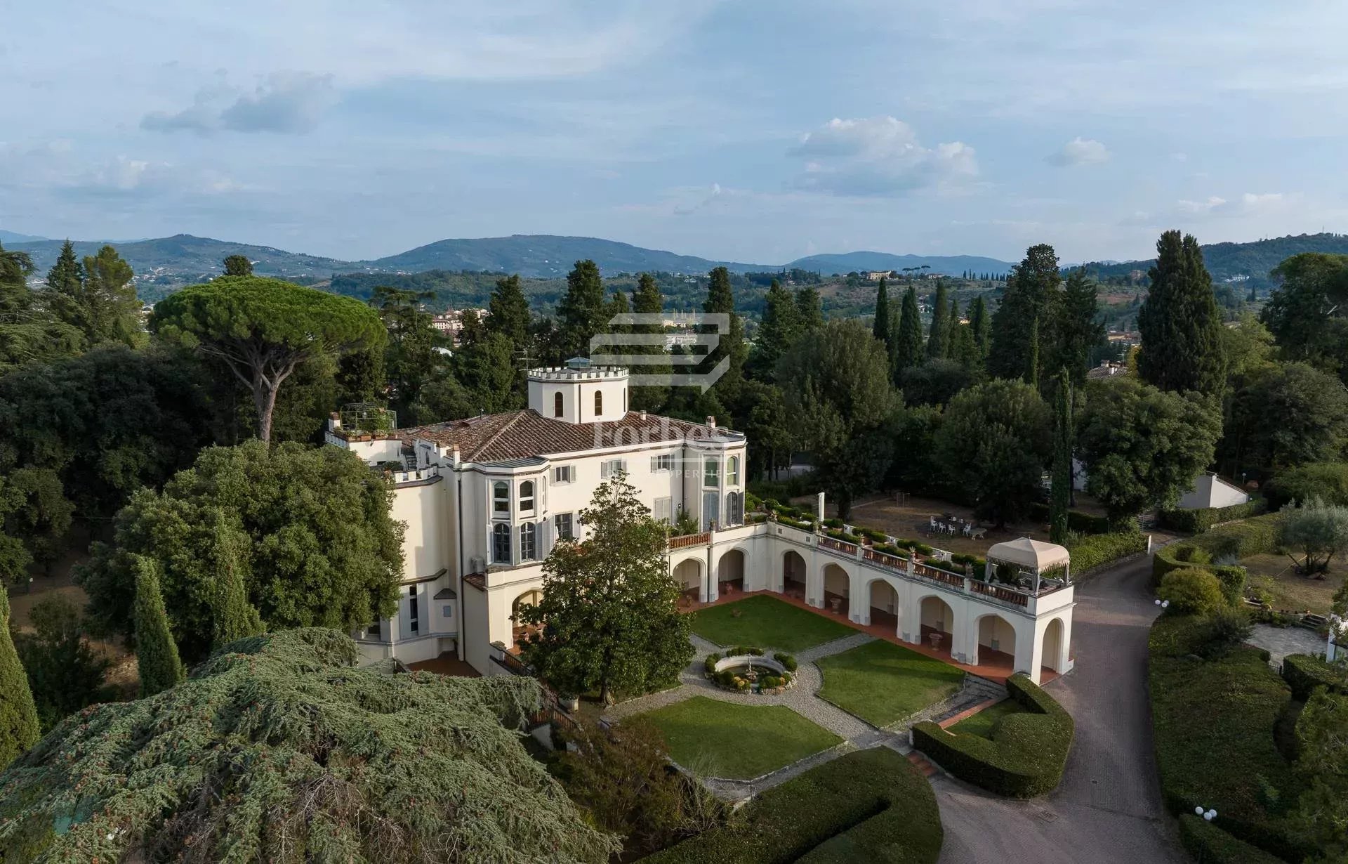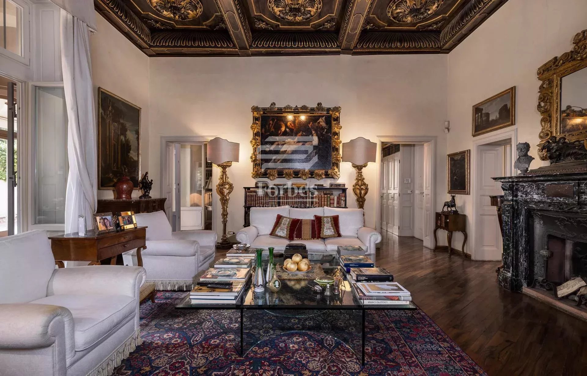 The home, which is accessed by a prestigious driveway overlooking the historic center, is currently in excellent condition, and features a refined loggia entrance leading to the apartment foyer.