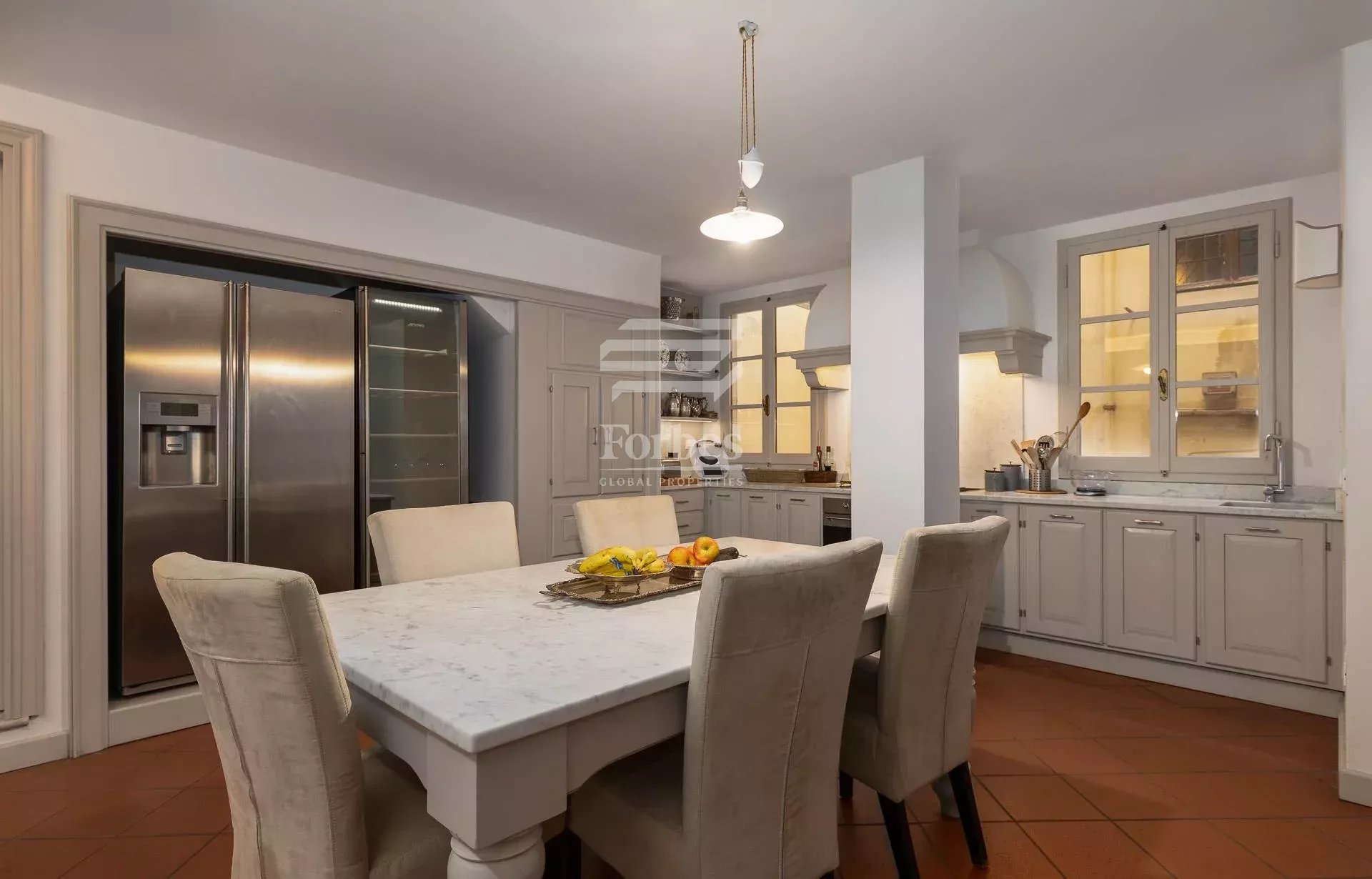 El prestigioso piso, con una superficie total de 670 m2, es principalmente de una sola planta y dispone de una terraza panorรกmica con una vista รบnica sobre la ciudad. El acceso directo a travรฉs de un ascensor conduce a un amplio hall de entrada que conduce a la zona de estar, caracterizada por un salรณn doble, un gran comedor y una espaciosa cocina comedor. La propiedad incluye cinco dormitorios, tres cuartos de baรฑo, un baรฑo de servicio y techos con frescos que confieren una elegancia atemporal a las estancias.