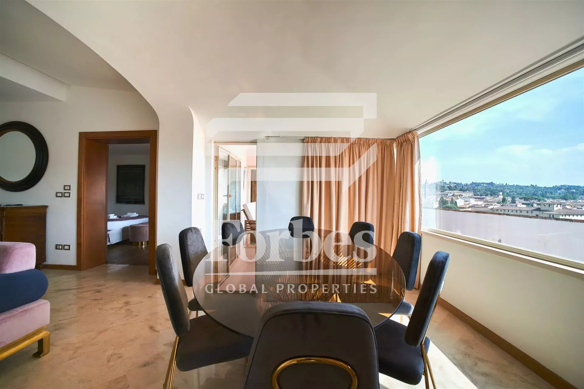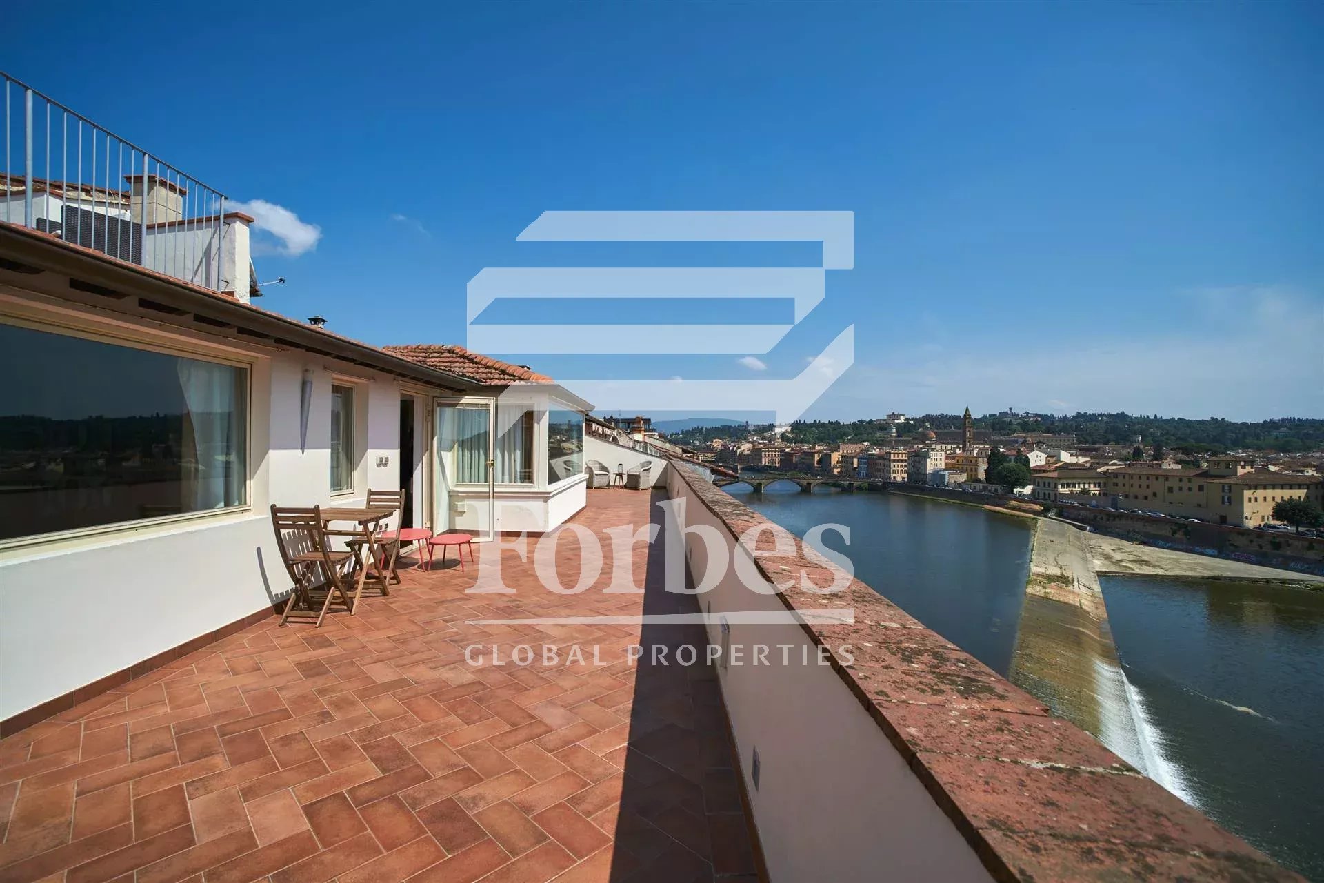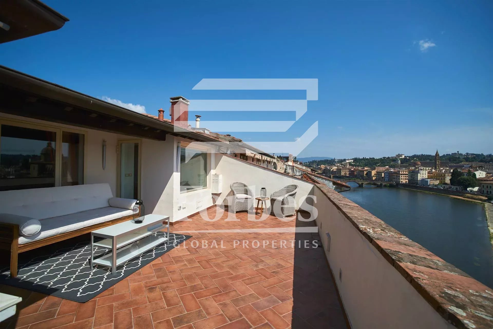 Nella zona del Centro Storico, sul Lungarno, proponiamo in vendita bellissimo e elegante attico con superattico di 150 MQ, posto al quinto piano di prestigioso palazzo nobiliare, servito da ascensore e con servizio di portierato. Oggetto unico, raffinato, arredamento di design, disposto internamente su due livelli e composto da: ingresso, soggiorno open space con suggestivi affacci, grandi vetrate, cucina abitabile, tre camere matrimoniali di cui due con bagno privato, una con vasca idromassaggio e stanza guardaroba, ed ulteriore servizio. Ogni stanza ha accesso al terrazzo panoramico con vista a 360° su Firenze monumentale e l’Arno.