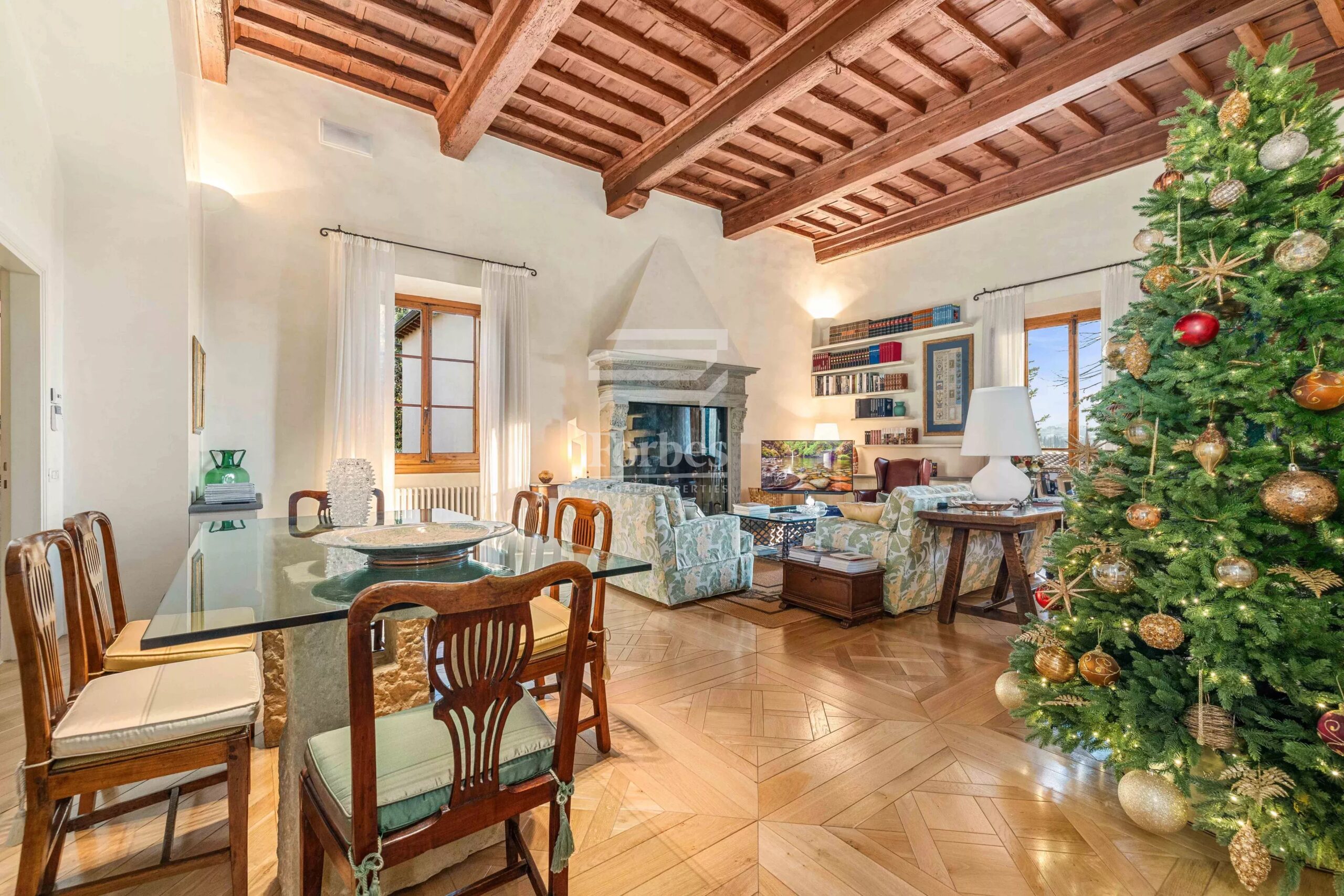 Refined apartment of 270 sqm located in a historic villa immersed in the green Tuscan hills, an elegant and reserved context that guarantees privacy and tranquility. The property, renovated and in excellent condition, is characterized by high quality finishes and attention to detail, combining the charm of the past with modern comfort.
