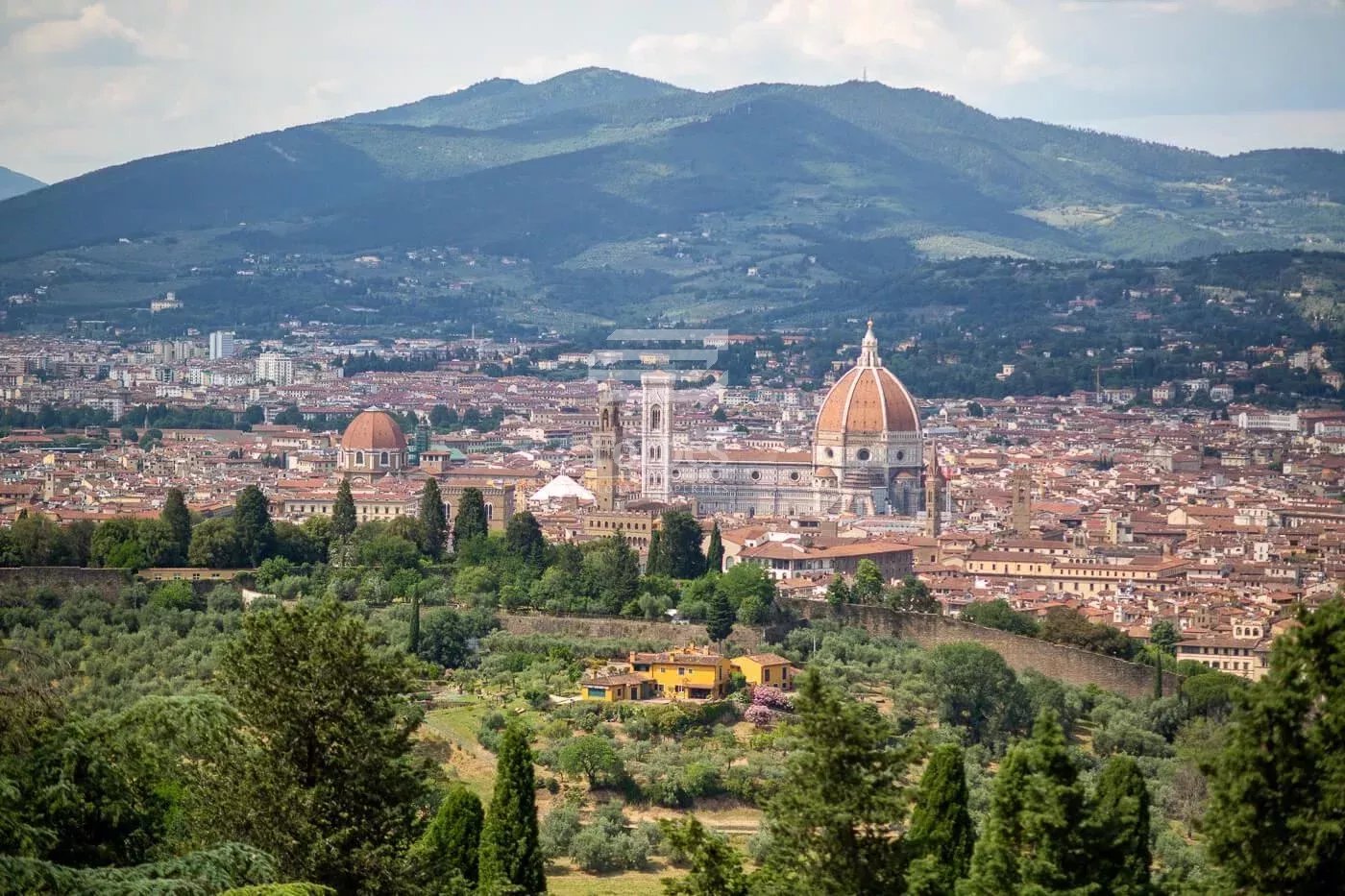 The second floor offers elegant en-suite rooms and a refined master area with walk-in closets, pink marble bathroom, terrace overlooking the cathedral and an atmospheric library. On the second floor are additional rooms and the viewing tower with seven windows that open a 360-degree view of Florence and the park.