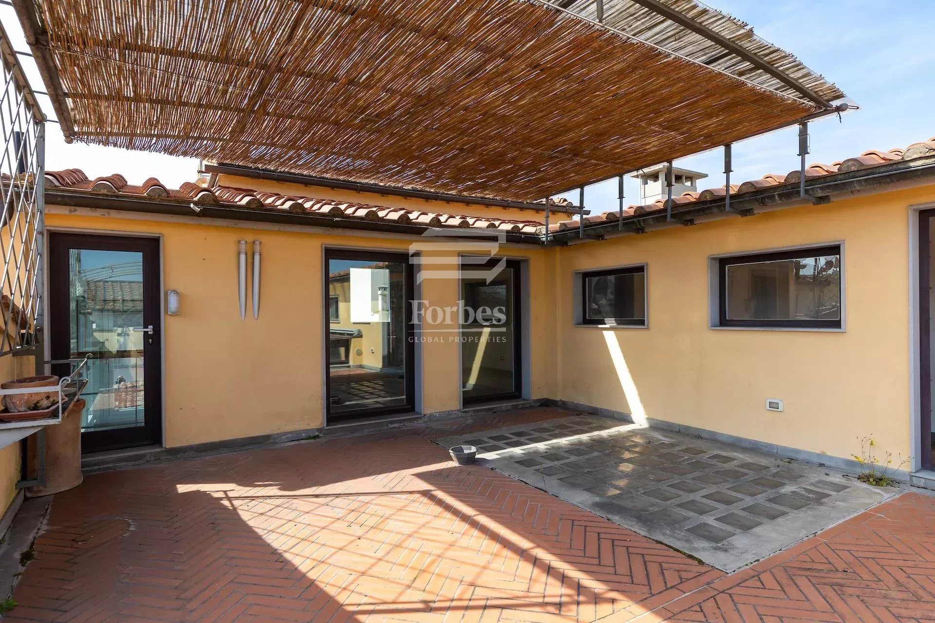 Gli spazi luminosi e gli ambienti accoglienti rendono questo esclusivo attico nel centro di Firenze una soluzione perfetta per chi desidera vivere nel cuore della cittร , senza rinunciare ai migliori comfort e alla privacy: una vera e propria villa sui tetti di Firenze.