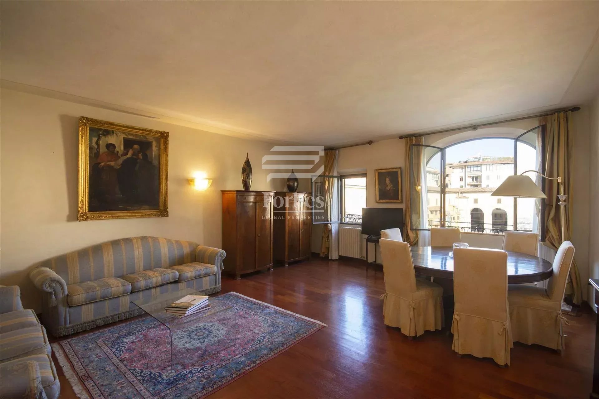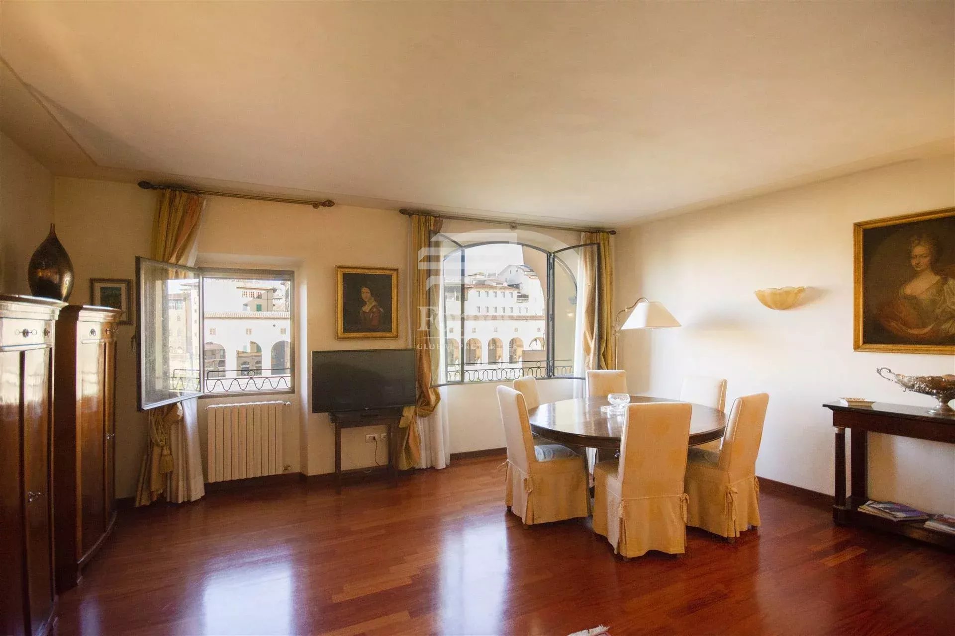 In affitto a Firenze, nella prestigiosa zona di Ponte Vecchio, elegante appartamento di 110 mq situato al terzo piano con ascensore in uno stabile signorile con servizio di portineria.
