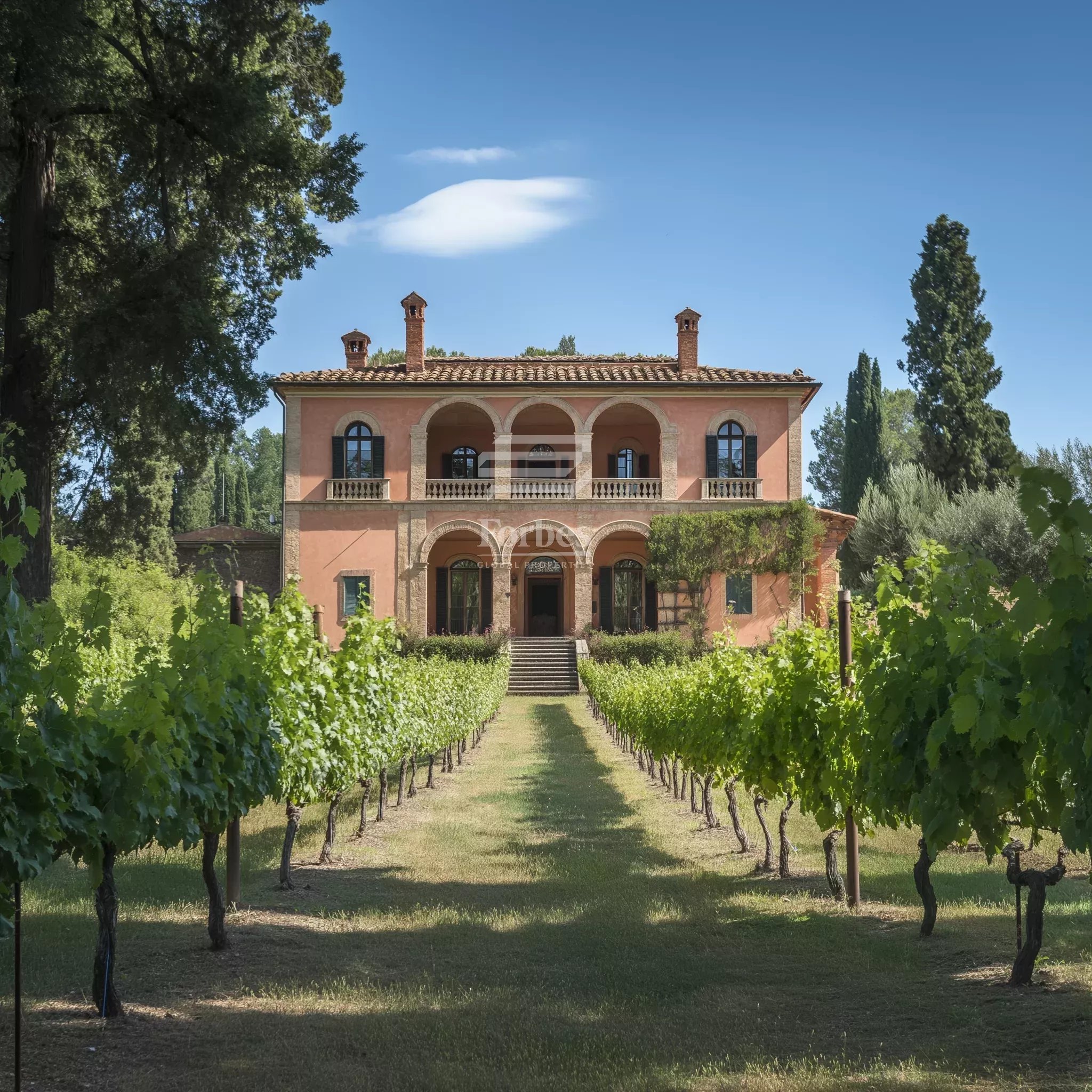 Поместье, датируемое XV веком и окруженное примерно 300 гектарами виноградников, оливковых рощ и лесов, состоит из главной виллы, полностью отреставрированной и украшенной фресками, и второй виллы, также полностью отреставрированной и разделенной на 19 элегантных сьютов.
