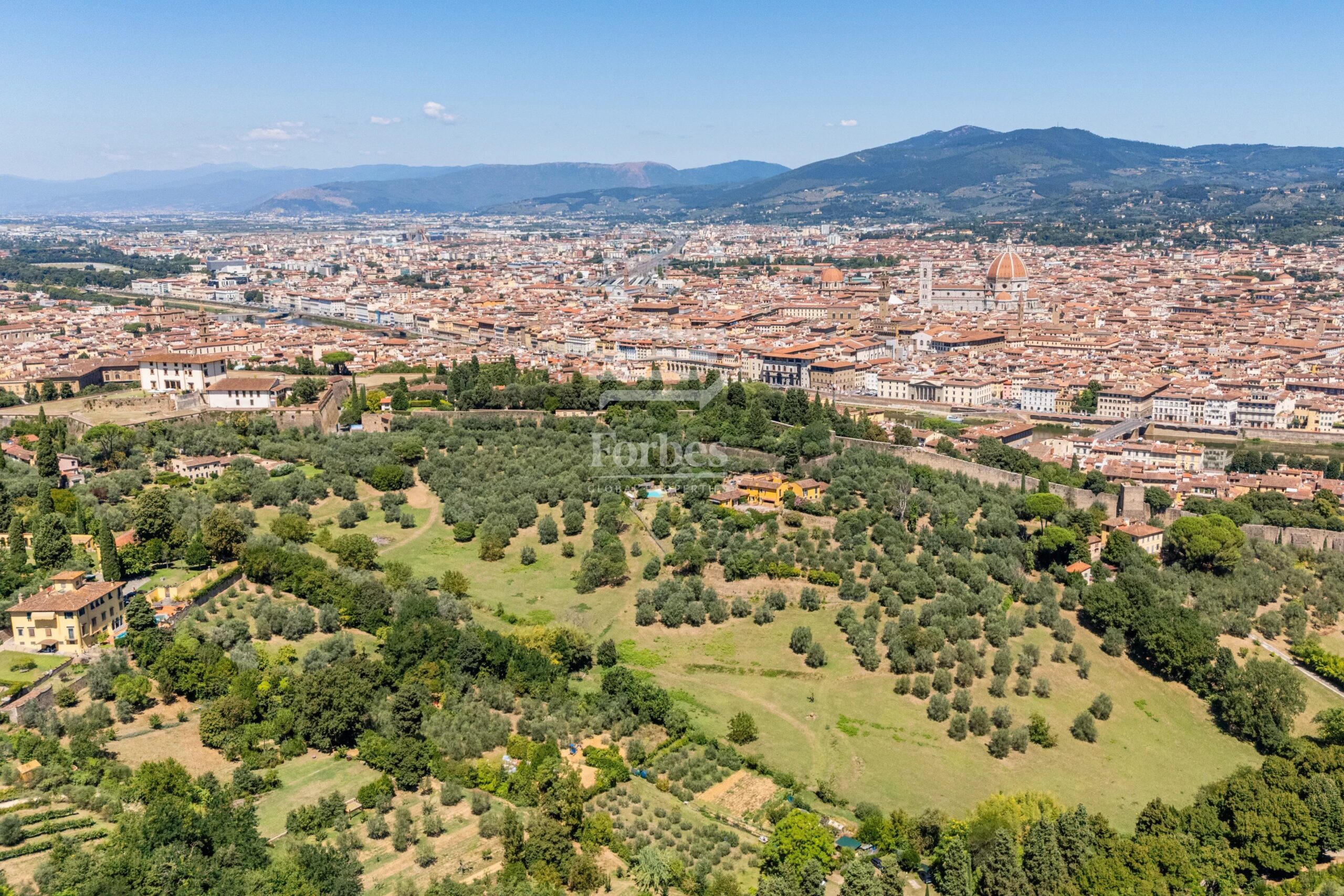 In una delle aree piรน prestigiose e ricercate di Firenze. a pochi passi dal celebre Piazzale Michelangelo e a soli cinque minuti dal cuore del centro storico. รจ in vendita una straordinaria villa con piscina. un rifugio esclusivo immerso nel verde e incorniciato dalle antiche mura cittadine. La proprietร si estende per 634 mq distribuiti su due eleganti livelli. offrendo complessivamente 8 camere da letto e 6 bagni. Lโingresso conduce in un maestoso salone dalle volte imponenti. che donano un fascino senza tempo e unโallure di raffinata monumentalitร . Una grande vetrata regala una vista spettacolare su Firenze. catturando in un unico sguardo i monumenti piรน iconici della cittร . Sullo stesso piano si trovano una luminosa sala da pranzo. una spaziosa cucina con ulteriore zona conviviale e una suggestiva cantina. Una zona notte dedicata agli ospiti. con due camere entrambe dotate di bagno en-suite. completa il livello. Una scenografica scala conduce al piano superiore. dove prende vita la zona notte principale: cinque camere da letto con cabine armadio. tre delle quali con bagno privato. un ampio studio con bagno e un raffinato guardaroba dโingresso. La suite padronale. con balcone esclusivo affacciato sulle colline. rappresenta il cuore intimo e privilegiato della residenza. Tutti gli ambienti sono inondati di luce naturale. grazie allโottima esposizione della villa. Al piano inferiore si trova la raffinata limonaia. perfetta come dependance indipendente. ideale per ospiti o per creare uno spazio privato e raccolto. Allโesterno. circa 300 mq di area pavimentata ospitano un elegante portico panoramico con affaccio sul Piazzale Michelangelo e sullโAbbazia di San Miniato al Monte. Il parco privato di 15.000 mq รจ un autentico eden fiorentino: piscina con zona solarium. uliveto secolare e alberi da frutto incorniciano questa residenza unica. La proprietร dispone infine di un ampio garage con accesso diretto allโabitazione e di diversi posti auto scoperti nel piazzale dโingresso.