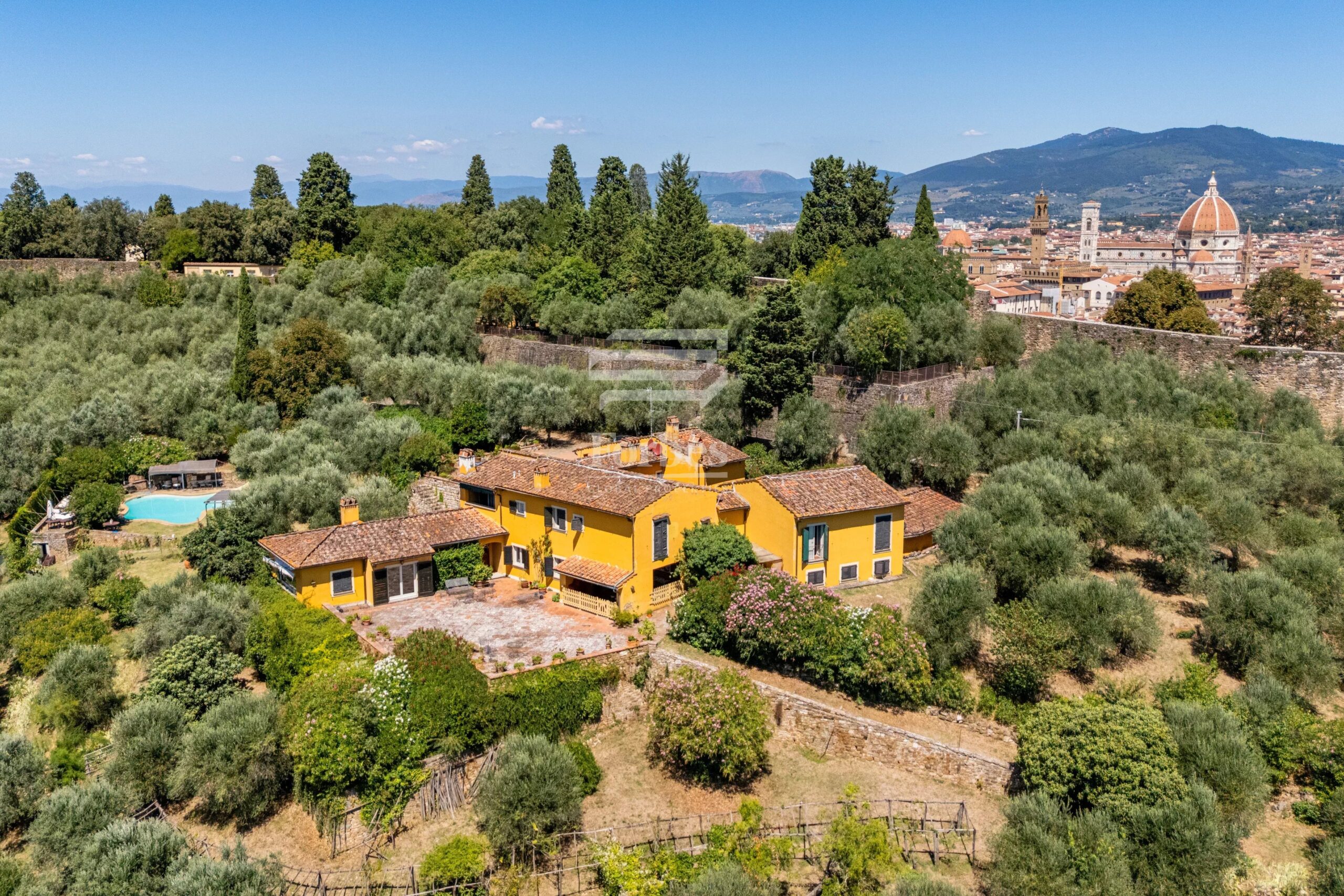 In einer der prestigetrรคchtigsten und begehrtesten Gegenden von Florenz. nur wenige Schritte von der berรผhmten Piazzale Michelangelo und nur fรผnf Minuten vom Herzen des historischen Zentrums entfernt. steht eine auรergewรถhnliche Villa mit Swimmingpool zum Verkauf. ein exklusiver Rรผckzugsort im Grรผnen und eingerahmt von den alten Stadtmauern. Das Anwesen erstreckt sich รผber 634 mยฒ auf zwei eleganten Ebenen und bietet insgesamt 8 Schlafzimmer und 6 Bรคder. Die Eingangshalle fรผhrt in ein majestรคtisches Wohnzimmer mit imposanten Gewรถlben, die einen zeitlosen Charme und eine Anziehungskraft von raffinierter Monumentalitรคt verleihen. Ein groรes Fenster bietet einen spektakulรคren Blick auf Florenz, der die berรผhmtesten Monumente der Stadt mit einem einzigen Blick erfasst. Auf der gleichen Etage befinden sich ein helles Esszimmer, eine gerรคumige Kรผche mit einem zusรคtzlichen Aufenthaltsbereich und ein charmanter Weinkeller. Ein Schlafbereich fรผr Gรคste mit zwei Schlafzimmern, beide mit eigenem Bad, vervollstรคndigt diese Ebene. Eine dramatische Treppe fรผhrt in das Obergeschoss, wo der Hauptschlafbereich zum Leben erwacht: fรผnf Schlafzimmer mit begehbaren Kleiderschrรคnken, drei davon mit eigenem Bad, ein groรes Arbeitszimmer mit Bad und eine raffinierte Eingangsgarderobe. Die Master-Suite mit ihrem exklusiven Balkon mit Blick auf die Hรผgel stellt das intime und privilegierte Herz der Residenz dar. Alle Rรคume sind dank der ausgezeichneten Lage der Villa von natรผrlichem Licht durchflutet. Im unteren Stockwerk befindet sich die raffinierte Limonaia, die sich als unabhรคngiges Nebengebรคude eignet, ideal fรผr Gรคste oder um einen privaten und gemรผtlichen Raum zu schaffen. Im Auรenbereich befindet sich auf 300 Quadratmetern gepflasterter Flรคche ein eleganter Panorama-Portikus mit Blick auf den Piazzale Michelangelo und die Abtei von San Miniato al Monte. Der 15.000 qm groรe Privatpark ist ein echtes florentinisches Eden: Schwimmbad mit Sonnenterrasse, jahrhundertealte Olivenhaine und Obstbรคume umrahmen diese einzigartige Residenz. Schlieรlich verfรผgt das Anwesen รผber eine groรe Garage mit direktem Zugang zum Haus und mehrere ungedeckte Parkplรคtze auf dem Eingangsplatz.