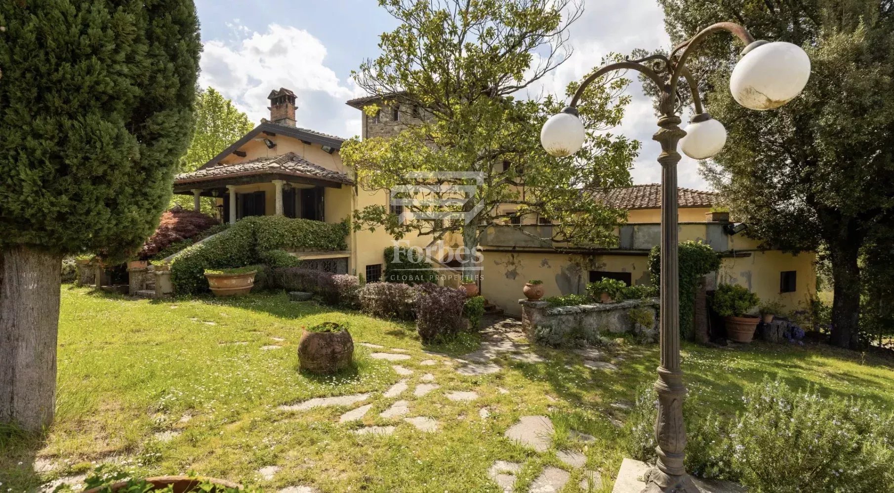 Con ogni probabilitร il complesso di immobili fungeva da sosta per i cavalli ed i viandanti e al contempo svolgeva la funzione di punto di avvistamento. Sono ancora riconoscibili i merli della torre che รจ stata epoca moderna ciperta e dalla quale, oggi adibita a sala di lettura, si gode di una vista a 360 e si domina la vallata in tutt la sua estensione. Di epoca liberty sono le pregiate vetrate firmate dal Chini. Il vecchio campo da tennis, provvisto di illuminazione per il gioco in notturna, non aspetta che di essere rimesso a nuovo per ospitare le sfide dei padroni di casa e dei loro ospiti. Una parte della villa รจ dedicata alla convivialitร , di cui fanno parte un grande forno per braci e girarrosti con adiacente forno a legna, un grande salone con caminetto, una cucina industriale e un bagno.