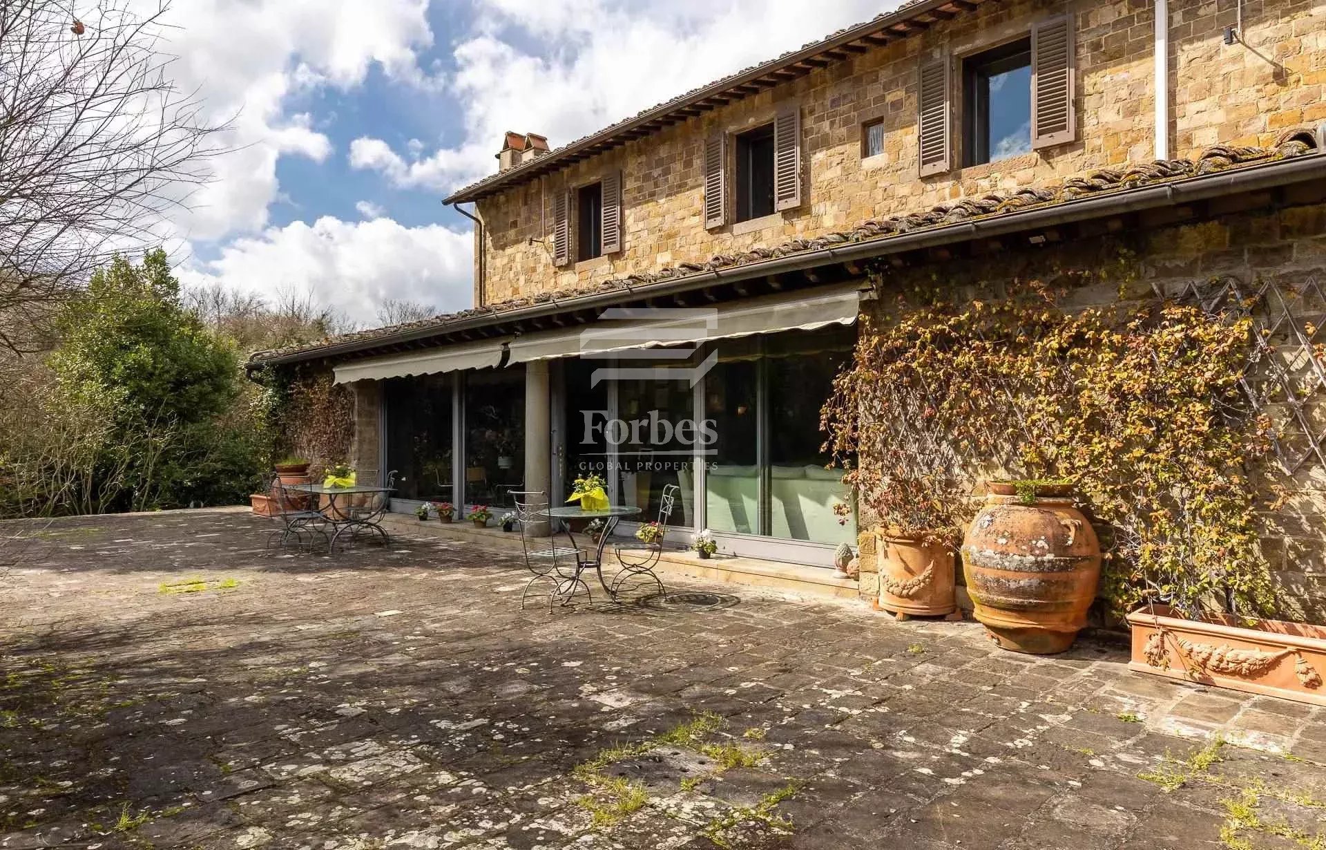 A few minutes from Poggio Imperiale, immersed in the tranquility of the Tuscan countryside, this magnificent villa of about 500 square meters is for sale. Free on four sides, the property includes an independent annex and 5 hectares of land with park and olive grove. The natural stone facade and large panoramic windows give bright rooms and a direct connection with the surrounding landscape.