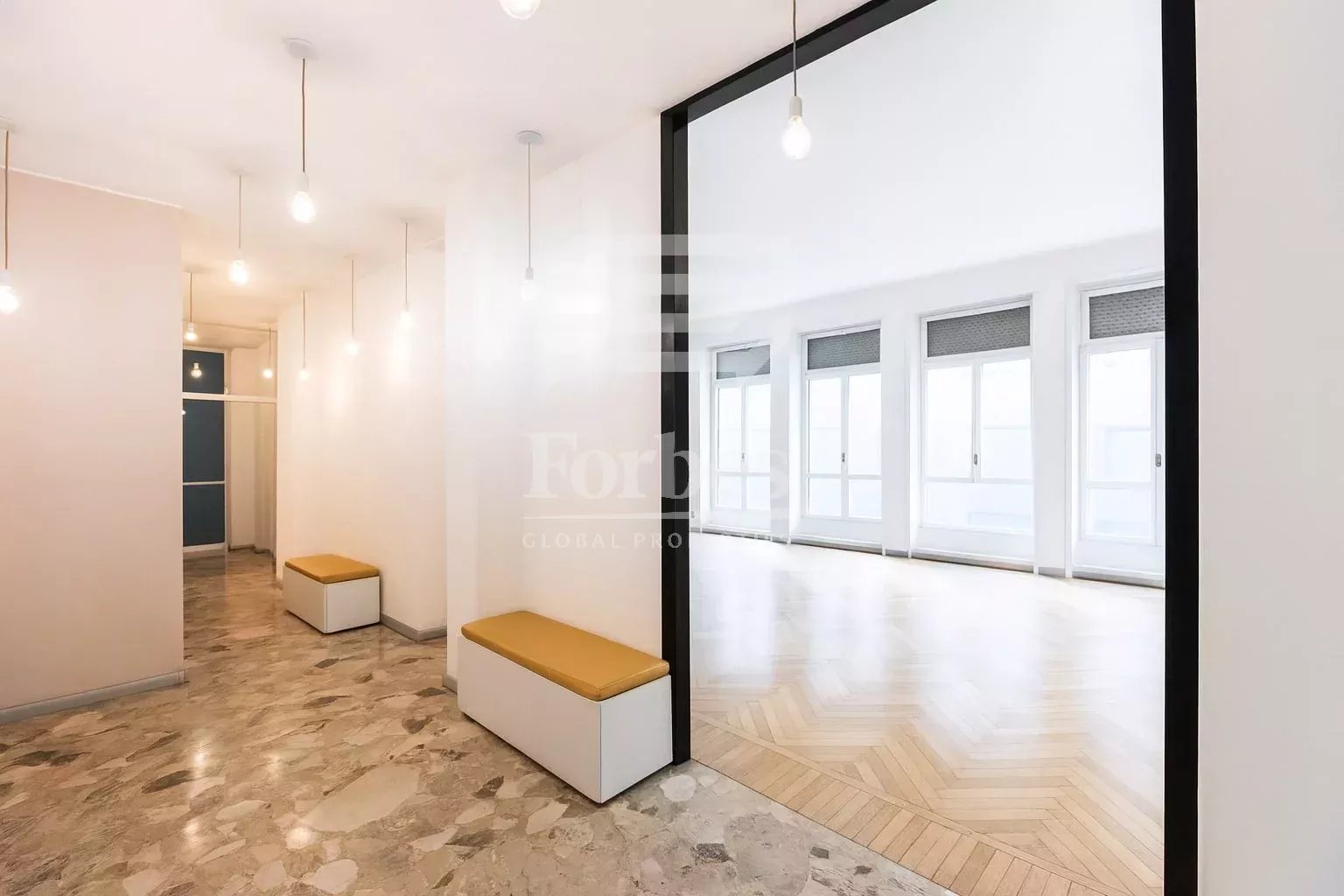 Actualmente utilizado como oficina, el piso, con una superficie aproximada de 180 metros cuadrados, destaca por su versatilidad: puede convertirse fácilmente en una exclusiva residencia o mantenerse como espacio de representación profesional.