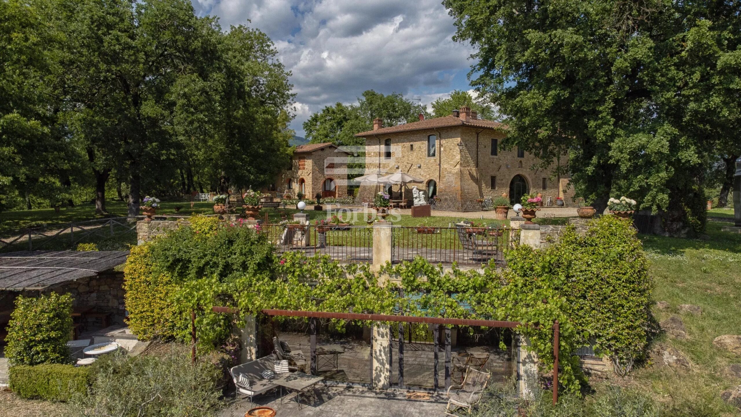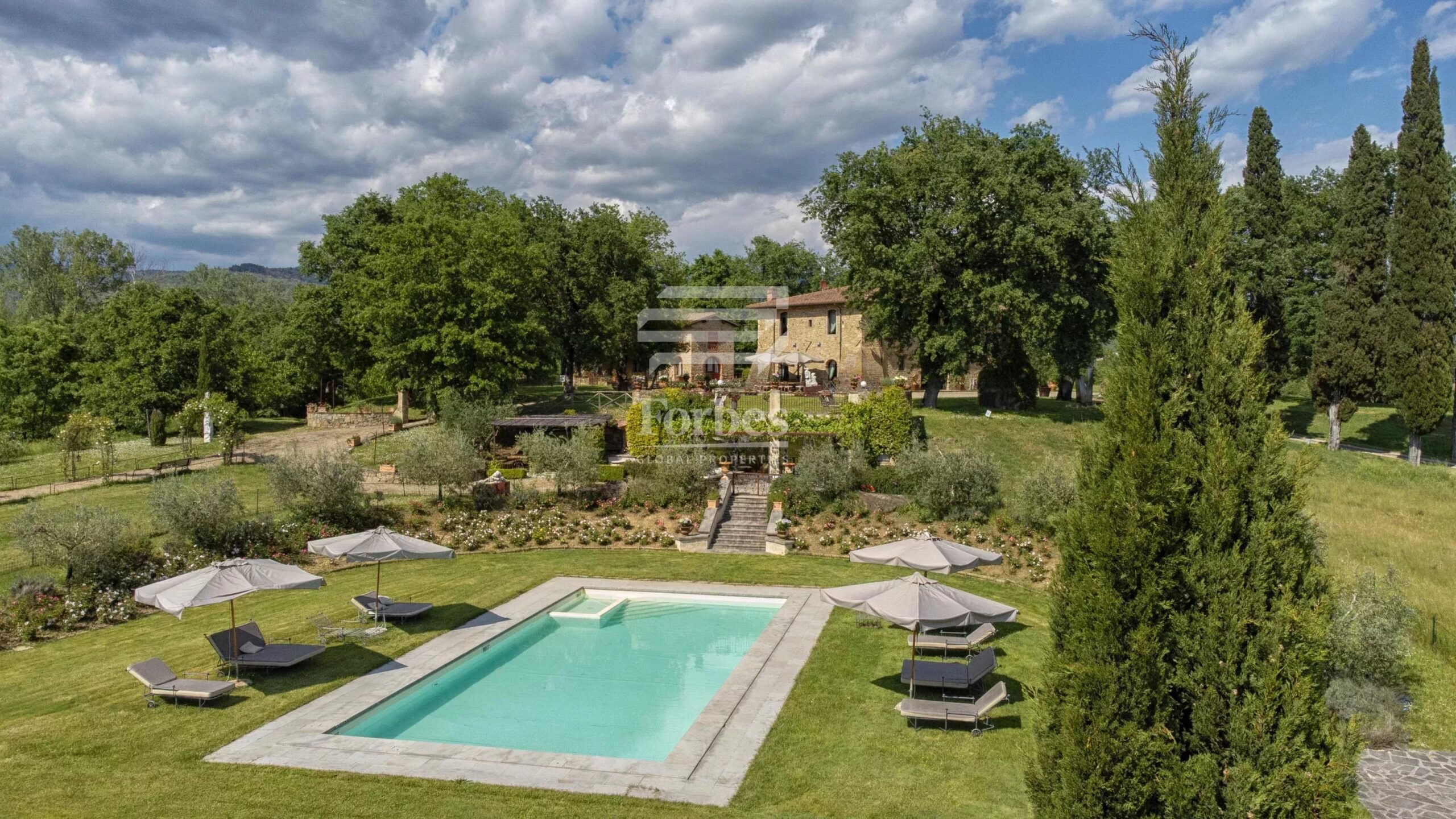 Questa affascinante proprietร in vendita in Toscana, situata tra Arezzo e Firenze, si estende su 32 ettari, di cui 10,2 ettari sono dedicati alla viticoltura biologica dal 2012.