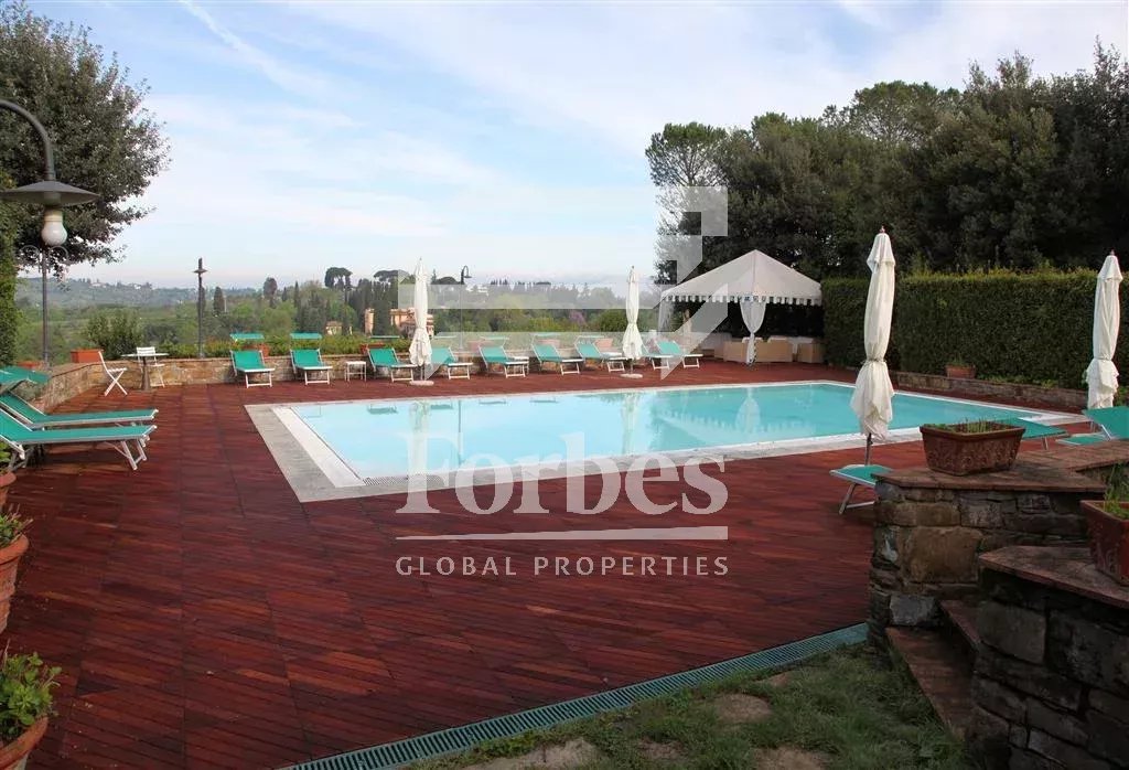 Nella splendide e suggestive colline di Firenze nelle vicinanze del Piazzale Michelangelo, affascinante e lussuosissima villa del sedicesimo secolo, completamente ristrutturata. Dispone di una piscina circondata da un ampio giardino. La proprietà di 2.000MQ è circondato da 8 HA di terreno con vigneti, oliveti e alberi da frutto. La proprietà è composta dal corpo centrale (villa) di 650 mq circa, un’abitazione di 340 mq, una fattoria di 770 mq, una cantina di 50 mq e una cappella di 90 mq il tutto per un totale di 1885 mq. Può essere utilizzata come abitazione residenziale o turistica.